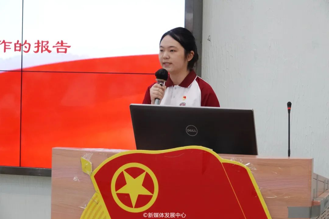 学生社团代表书画协会负责人陈宋钒同学以“奋斗追梦好年华,青春绽放绚丽花”为主题进行分享。她分别从金句分享、心得体会、社团风采和未来工作计划四个方面进行讲述。新时代青年应不负习近平总书记的殷殷嘱托,不断增强责任感和使命感,提升自身专业素养,持续发挥学生社团活跃校园文化的作用。