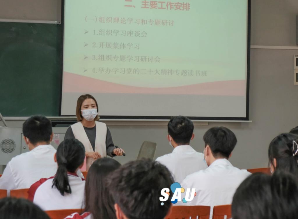 陈刚书记领学党的二十大精神。他以习近平总书记对当代青年的寄语为切入点,列举数据,回顾大会召开细节,详细解读党的二十大报告内容。他强调,党的二十大报告,凝聚党心民心,全面总结过去五年工作和新时代十年的伟大变革,提出开辟马克思主义中国化时代化新境界新要求,擘画迈向全面建设社会主义现代化国家新征程、向第二个百年奋斗目标进军的宏伟蓝图,鼓励各社团负责人将社团发展与时代课题相结合,在社团管理建设、活动举办等方面展现青年智慧与责任担当。希望社团加强品牌建设,形成具有社团特色的文化氛围,向优秀社团看齐。