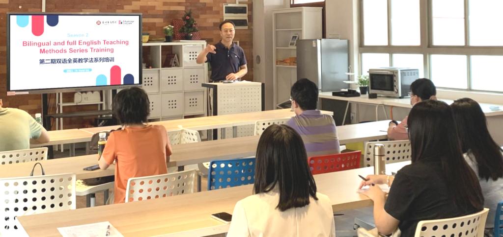 在第二场主题为《提高双语(全英)教学课堂沟通技能,促进教学成效》的讲座中,戴伟博士通过阐述英语听说能力对于双语(全英)教学的影响,分析英语为母语和英语为非母语教师在教学过程中不同优势对学生学习的影响。他表示,教师可通过多方面提高学生英语沟通能力,英语沟通能力除了发音、流畅度、词汇量、语法,还应考虑语境、文化以及交流态度等因素。