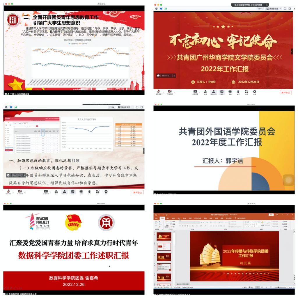 本次会议严格按照团中央、团省委关于基层团组织书记述职评议考核有关工作部署以及学校党委对共青团工作的具体要求。会议对威廉希尔中文网站2022年共青团工作进行了系统的梳理和总结,为各学院借鉴交流、取长补短、明晰方向、共谋发展搭建了平台,同时也对2023年持续深化共青团改革创新进行部署。在今后的工作中,华商共青团将始终坚守初心使命,牢牢把握“加强思想政治引领”为根本,牢记“服务青年”的工作宗旨,做好学校联系广大青年学生的桥梁和纽带作用,加强共青团的“政治性、先进性、群众性”为工作目标,聚焦主责主业,拓宽工作思路,创新活动载体,全面推动共青团各项工作不断取得新成绩!