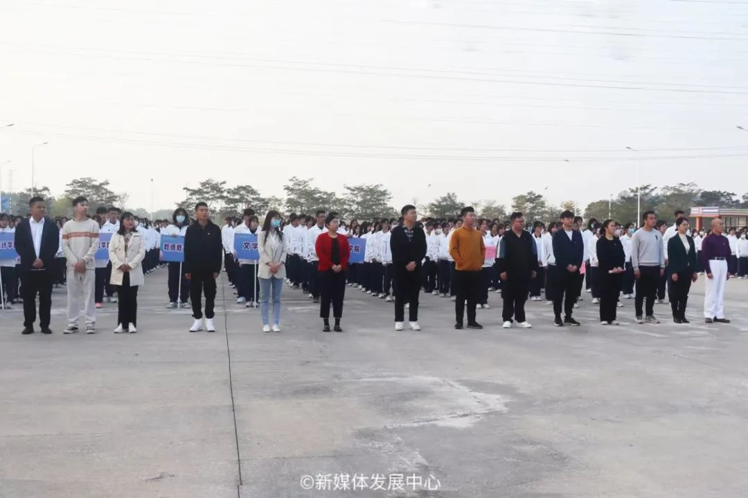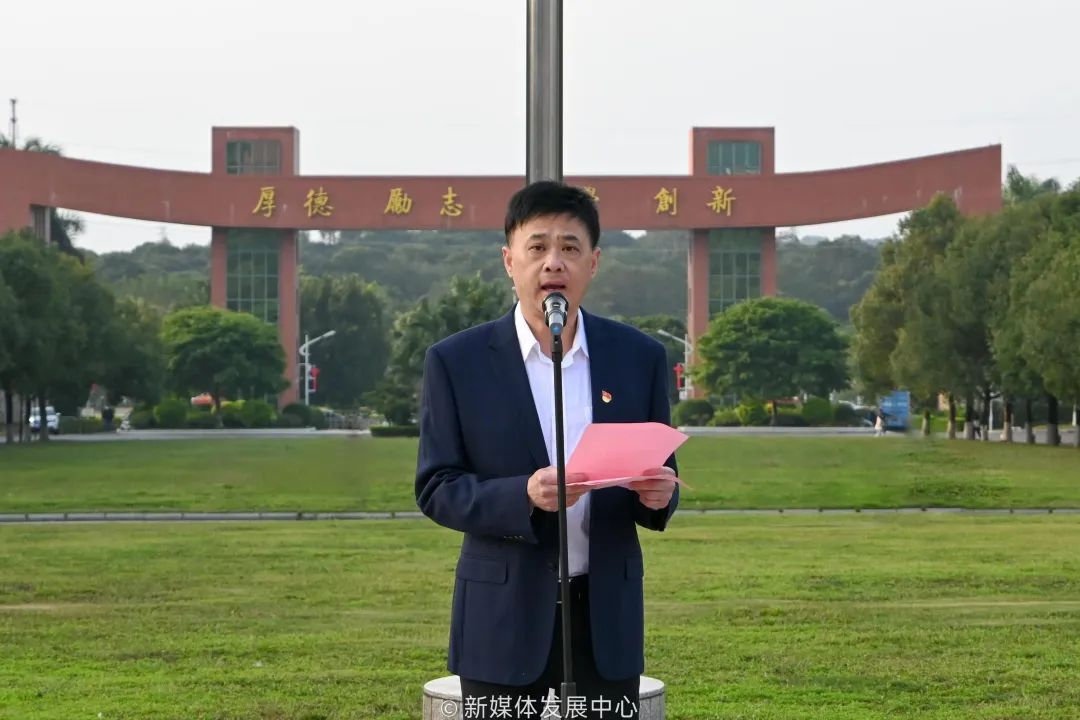 最是一年春好处,奋揖扬帆正当时。为进一步学习贯彻落实党的二十大精神,加强爱国主义教育,增强师生爱党、爱国、爱校意识,2月20日上午,在学校党委的指导下,威廉希尔中文网站团委在增城、四会两校区同时举行2022-2023学年第二学期开学升旗仪式暨思政第一课。出席本次升旗仪式的领导和老师包括:学校党委苏宁书记,四会校区党委书记王卫平副校长,校长助理、四会校区管委会常务副主任兼四会校区党政办覃少冰主任,党委宣传部刘苗部长,校团委陈刚书记,校团委挂职副书记任欣鹭老师,校团委兼职副书记朱宁宁老师,校团委常委、国际学院团委书记杨李军老师,校团委老师、各二级学院团学老师、学团办教师代表、团学学生骨干、青马班学员、团支书、学生社团代表以及团员青年代表等。