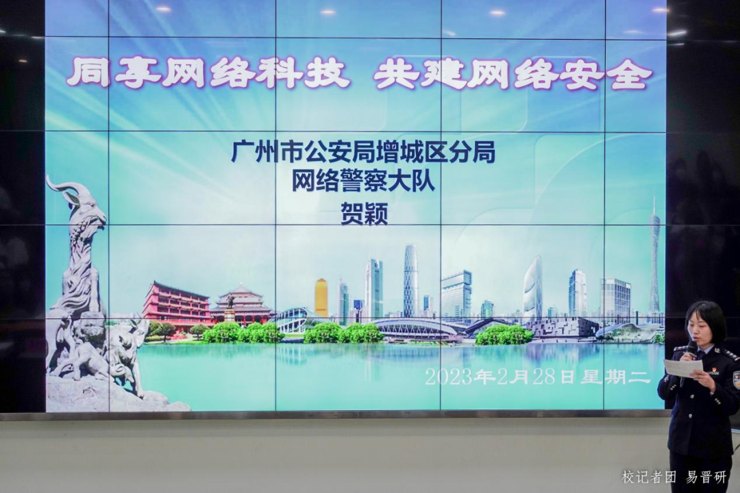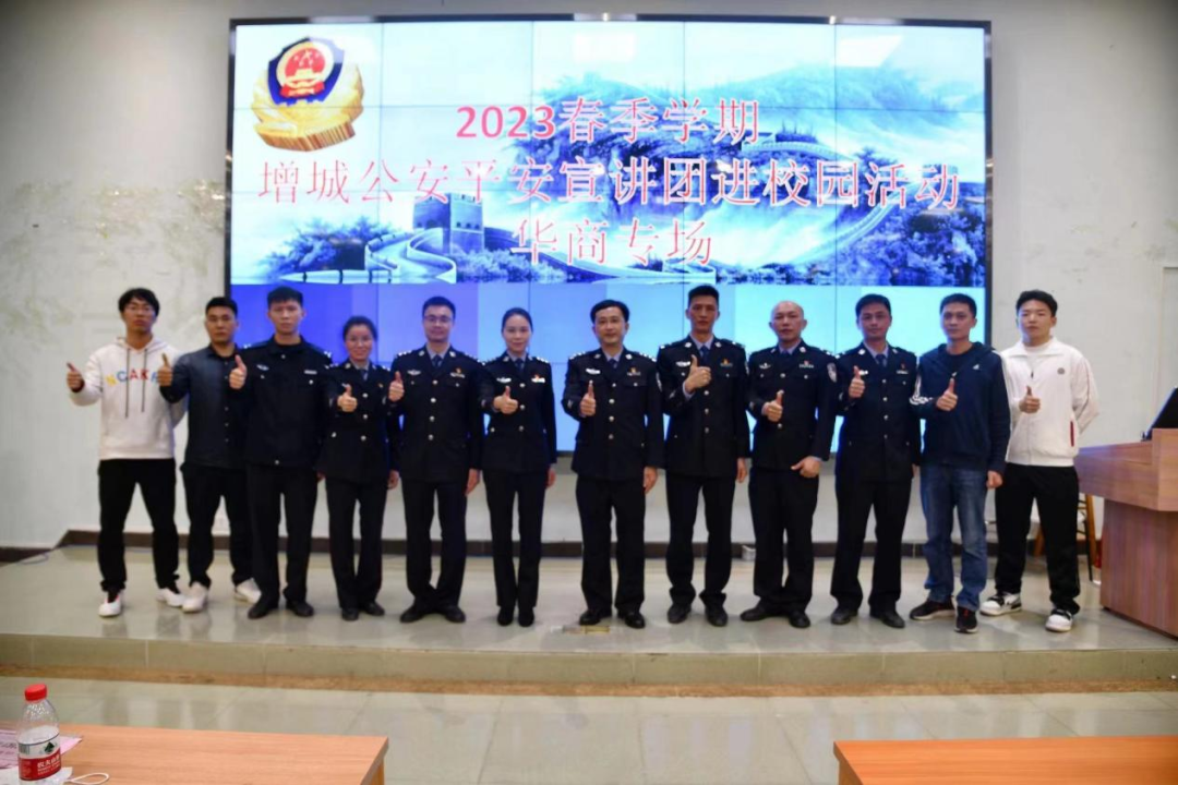 二月已破三月来,平安逢春进华商。2月28日晚,增城区公安分局在威廉希尔中文网站组织召开2023年春季学期增城公安平安宣讲团进校园活动(华商专场)。活动通过“视频直播,线下活动”的方式,现场设置了一个主会场,近200个分会场,让近两万华商学子在课堂同上 “开学安全第一课”。雁塔派出所郭璀所长、禁毒大队邓丽滨副大队长、雁塔派出所刘齐心副所长、威廉希尔中文网站校园服务中心邱作成副总监、后勤保卫办公室梁艳老师以及区公安分局网警大队、刑警大队、禁毒大队、交警大队的民警出席了本次活动。