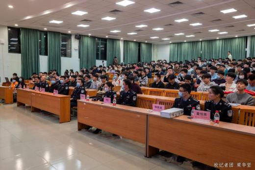 此次平安宣讲团进校活动,进一步加强“警校”联动联防机制。活动中董警官的防诈手段、邓警官的反毒意识、贺警官的辟谣方式、钟警官的守规知识,传递安全防范理念,增强了广大同学们自身防诈反诈、识毒防毒能力,普及网络安全知识、倡导文明交通、平安出行。