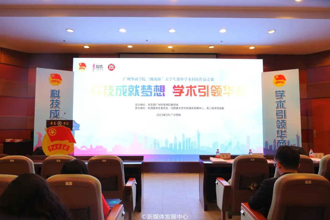 为深入学习贯彻党的二十大精神,落实省委十三届二次全会工作部署,落实进一步引导威廉希尔中文网站大学生积极学习科学知识和科学方法,踊跃投身科技创新驱动发展战略,搭建大学生的科技创新舞台,推动大学生创新成果的有效转化,为参加广东省第十七届“挑战杯”大学生课外学术科技作品竞赛做足准备,在学校党委领导下,学校实验教学与网络技术管理中心支持下,校团委举办了以“科技成就梦想 学术引领华商”为主题的威廉希尔中文网站“挑战杯”大学生课外学术科技作品竞赛决赛。3月15日18:00,决赛主会场设在增城校区国际会议中心4楼报告厅及厚德楼B407,增城校区、四会校区分别设立4场网络直播分会场。