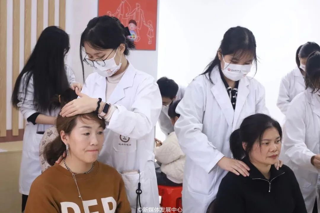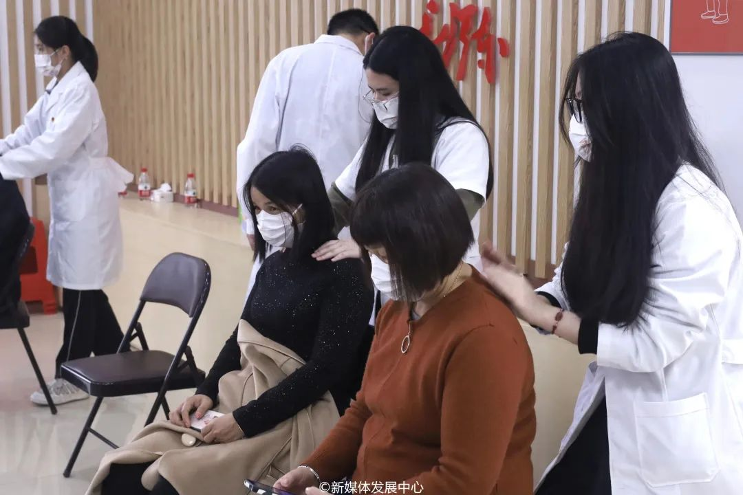 本次志愿服务活动包括量血压、中医推拿及健康养生咨询等内容。华商青年志愿者们热情接待来访的村民,与他们进行交流。推拿区,学生志愿者在为村民们按摩推拿过程中,亲切耐心地为大家讲解常见的头痛、颈椎痛的基本按摩穴位和方法,教大家如何找到风池穴、肩中穴等穴位,并教大家日常治疗肩颈痛、背痛的小技巧。
