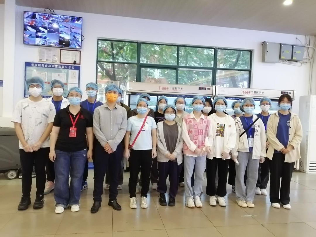 按照食堂的要求,学生代表们在食堂工作人员的带领下,戴上口罩和头套,走进第四食堂留样间、仓库、冷藏库、粗加间、烹煮间、洗消间、明厨亮灶等区域进行参观学习。