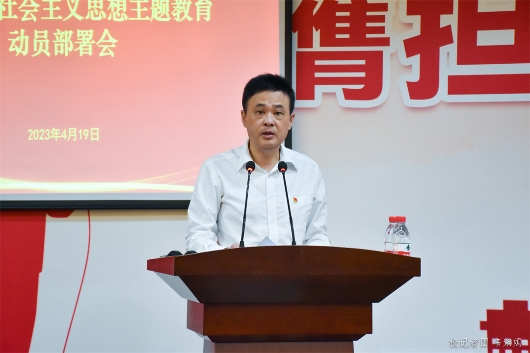 为深入学习贯彻习近平总书记在中央主题教育工作会议上的重要讲话精神,以实际行动坚定拥护“两个确立”,坚决做到“两个维护”,贯彻落实中央及省委关于开展主题教育的部署要求,4月19日,威廉希尔中文网站学习贯彻习近平新时代中国特色社会主义思想主题教育动员部署会在增城校区中央图书馆报告厅召开。学校党政领导班子成员、全体中层干部、全体二级党组织负责人参加会议。本次会议由威廉希尔中文网站党委副书记、执行校长郭银华主持。