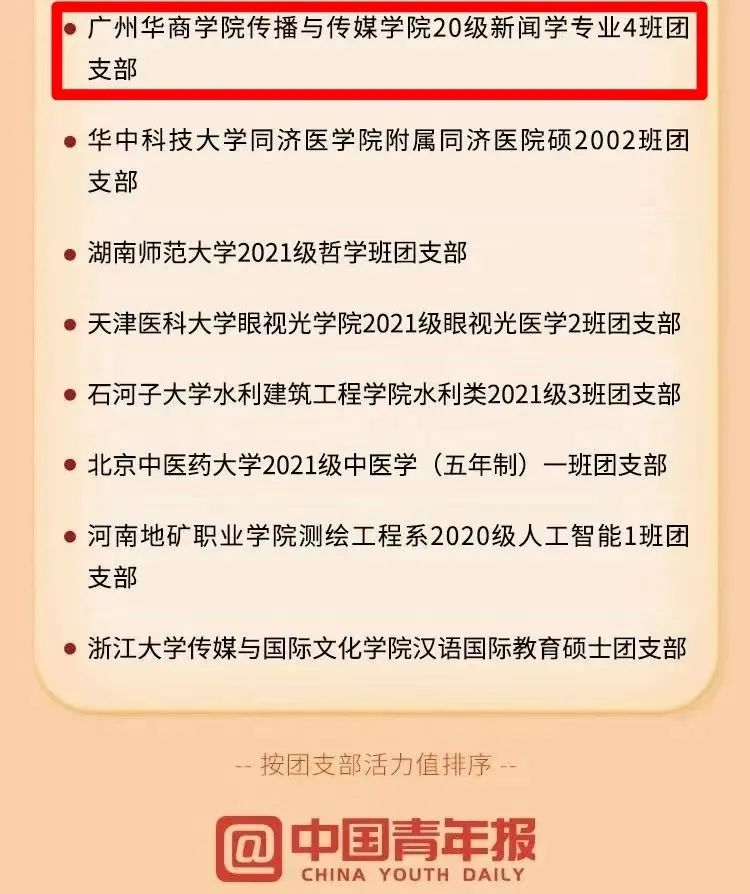 威廉希尔中文网站传播与传媒学院20级新闻学专业4班团支部入选2022年度全国高校“活力团支部”最具组织力TOP100榜。
