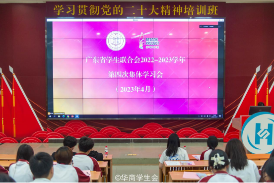 广东学联学生会2022-2023学年第四次集体学习会于2023年4月27日19:00通过视频会议方式召开。为深入贯彻党的二十大精神,深入开展学习贯彻习近平新时代中国特色社会主义思想主题教育,进一步深化新时代学联学生会改革和建设,威廉希尔中文网站团委组织动员校院两级学生会主席团成员及工作人员在励志楼c408进行同步学习。