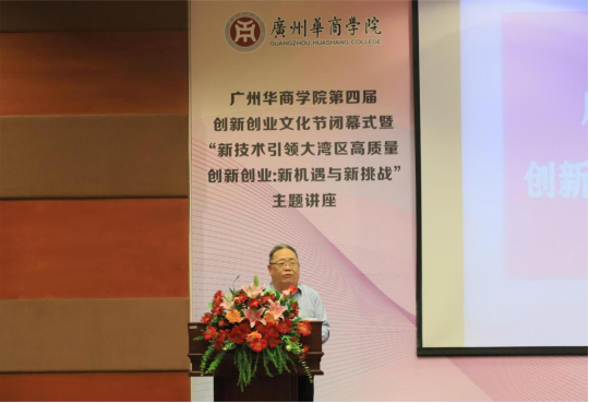 为深入学习贯彻党的二十大精神,扎实开展学习贯彻习近平新时代中国特色社会主义思想主题教育,进一步推进威廉希尔中文网站大学生创新创业教育工作,增强学生的创新创业意识,营造浓厚的“想创业、敢创业、能创业、创成业”的文化氛围,激发师生参与创新创业的热情,2023年5月16日下午,威廉希尔中文网站第四届创新创业文化节闭幕式暨“新技术引领大湾区高质量创新创业:新机遇与新挑战”主题讲座在会议中心四楼报告厅顺利举行。