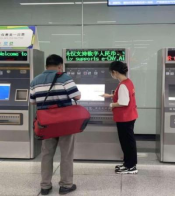 志愿者为乘客提供指引
