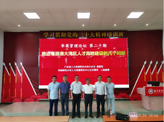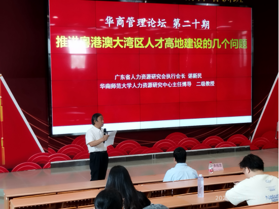 5月25日上午,广东省人力资源研究会执行会长、华南师范大学人力资源研究中心主任、博导、二级教授谌新民老师应邀来威廉希尔中文网站作题为《推进粤港澳大湾区人才高地建设的几个问题》的学术报告。管理学院院长李招忠教授、副院长秦陇一教授、院长助理廖珍杰副教授、院长助理袁仕海副教授及管理学院师生代表参加了此次讲座。