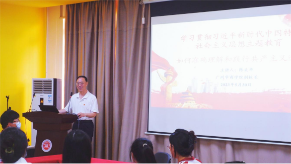 陈美华副校长结合主题教育相关要求,以《如何准确理解和践行共产主义道德》为主题,围绕共产主义道德、会计职业道德讲授主题教育专题党课。