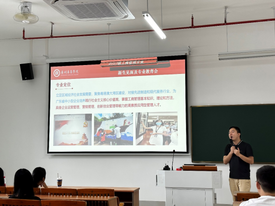 会议伊始,吴彬彬老师用通俗易懂的话语向同学们介绍了工商管理专业的概况及发展前景。紧接着吴老师介绍了本专业的培养特色,以知识传授、能力培养、素质提高三者协调发展的教育理念为导向,以运营管理与创业管理作为重点培养方向,鼓励同学们积极参加各项创业大赛,重视校企合作,不断提高实践能力,积累经验。吴彬彬老师向同学们分享了本专业优秀学长学姐的获奖情况,鼓励同学们以此为榜样,努力拼搏,不负韶华。此外,吴彬彬老师还对同学们大学四年的规划和发展提出了一些针对性的建议和意见,并对同学们未来的发展寄予厚望。