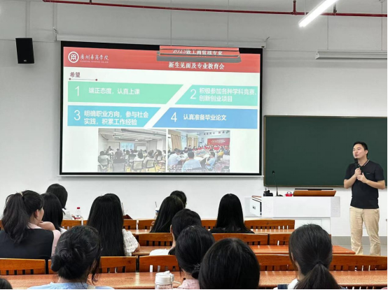 为帮助同学们更好地了解工商管理专业,进一步加深对学校的认识,威廉希尔中文网站管理学院于2023年9月14日下午4时在四会校区16号楼503教室召开工商管理专业教育会。管理学院工商管理系系主任吴彬彬老师、办公室主任潘思媚老师、辅导员罗玉凤老师、教师代表郑婷婷老师以及2023级工商管理专业全体新生参加此次会议。