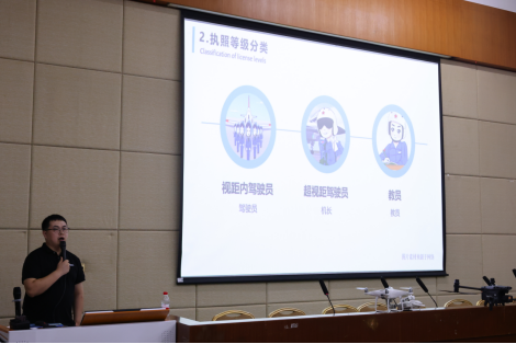 广东能飞科技有限公司江晓俊为同学们分享了无人机应用领域。他指出,除了拍摄,无人机的应用还涉及农业、医疗、交通、勘测、搜救、军事等领域,考取无人机执照,能够更好地拓展学生的就业领域。