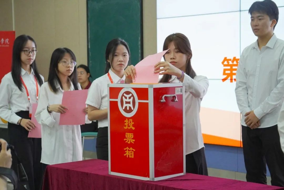 在正式选举威廉希尔中文网站教师教育学院第三届学生会委员会委员的环节中,各学生代表在监票人的监督下,庄严地将自己的选票投入投票箱。