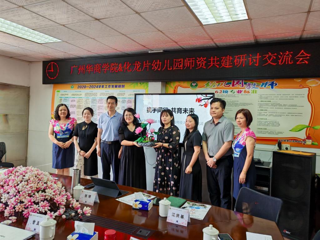 研讨交流会后,化龙片区幼儿园为威廉希尔中文网站赠送纪念品,双方代表合影留念。