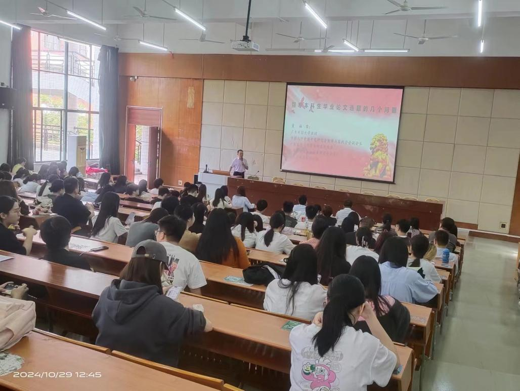 10月29日中午,管理学院在励志楼C208教室组织开展《本科毕业论文如何选题》主题讲座。本次讲座特邀广东财经大学董福荣教授担任主讲嘉宾。