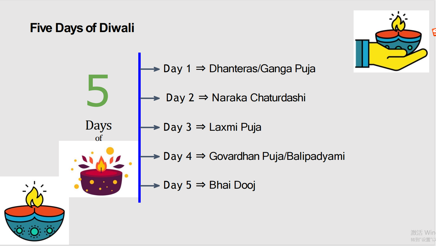 本次印度文化分享会安排在了印度排灯节(Diwali)期间,该节日是印度的新年。Hiren Bhavsar博士从排灯节(Diwali)的起源讲起,详细介绍了排灯节的历史由来和风俗,并介绍了持续5天的排灯节每一天的庆祝节点和庆祝方式。