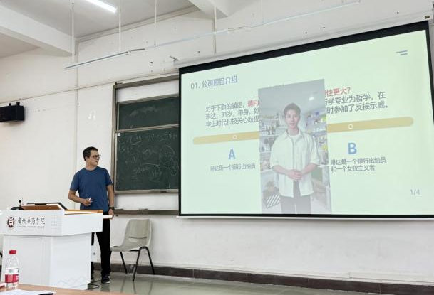 荣佳老师结合“AI”创新课堂互动方式,让观赛者运用激光笔现场答题。“AI”老师根据答题情况讲解知识点,带动了《证券投资学》课堂的氛围。