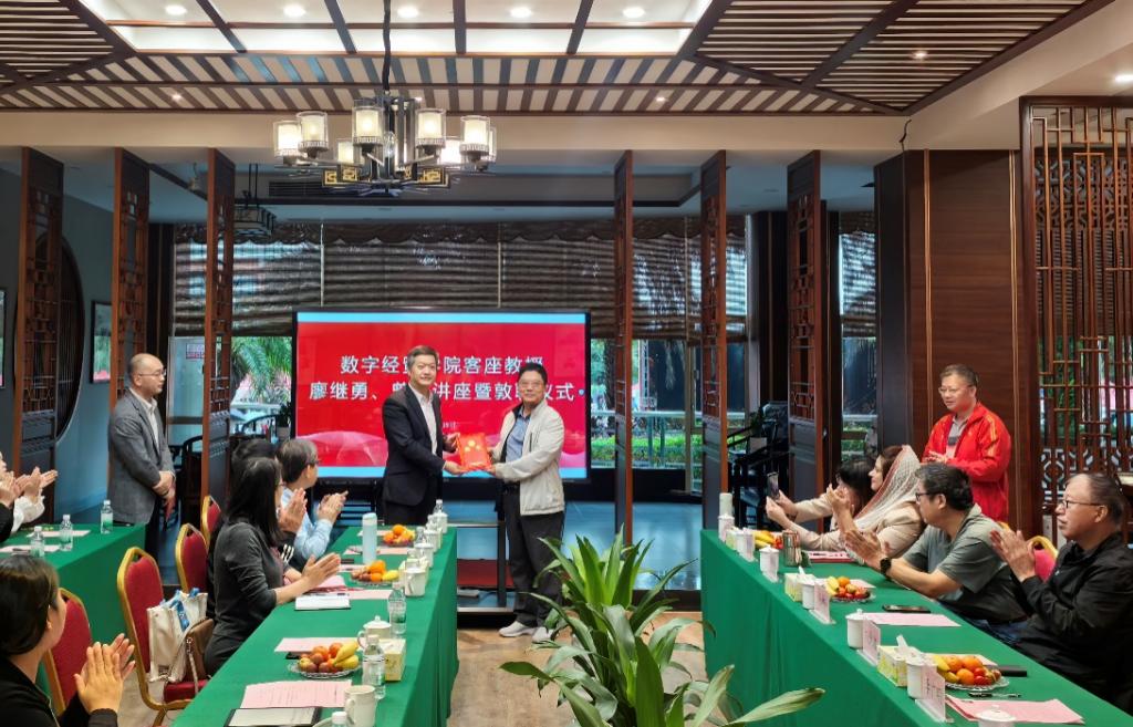敦聘仪式伊始,数字经贸学院院长李广明教授详细介绍了廖继勇先生和曾昱先生的职业背景和学术成就。在热烈的掌声中,刘少波副校长代表学校向廖继勇先生和曾昱先生颁发威廉希尔中文网站客座教授聘书。廖继勇先生在受聘感言中分享了对未来合作的展望,表达了对教育事业的热忱和对学院发展的期待。