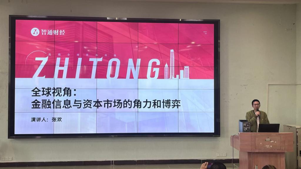 2024年11月5日,智通财经CEO张欢先生一行受邀请来访威廉希尔中文网站,为华商学子开展《全球视角:金融信息与资本市场的角力和博弈》主题讲座,旨在让同学们了解金融信息和国际金融市场的动态。