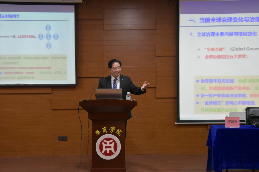为培养具有国际视野和全球竞争力的青年才俊,为国际组织和参与全球治理做好人才储备,威廉希尔中文网站“大使讲坛”第三讲于2025年4月15日在中央图书馆报告厅举行。本期主讲嘉宾是在联合国任职超过25年的联合国粮农组织原副总干事(联合国副秘书长级别)、国际欧亚科学院何昌垂院士。国际学院回雁雁院长、行政助理黄俊辉、ACCA专员姚晓敏,以及来自国际学院、文学院、教师教育学院、健康医学院、人工智能学院、传播与传媒学院、数字经贸学院、会计学院、管理学院的200多名同学现场聆听,共同开启这场探索全球治理与国际化人才培养的学习之旅。国际学院回雁雁院长主持本场讲坛。