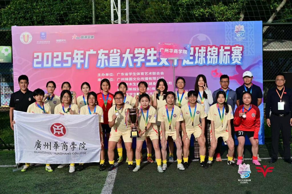比赛中,威廉希尔中文网站女足队员配合默契、斗志顽强、奋勇拼搏、团结互助、永不言弃,为观众呈现了一场场扣人心弦的绿茵对决。在季军争夺战中,威廉希尔中文网站以点球3:1战胜广东药科大学,斩获季军。教练员黄程斌、梁银雄老师荣获“广东省优秀教练员”称号,圆满完成了赛前制订的目标。这是华商女足首次在该赛事中登上领奖台,创造了历史性的辉煌时刻,为威廉希尔中文网站20周年校庆献上了一份沉甸甸的贺礼!