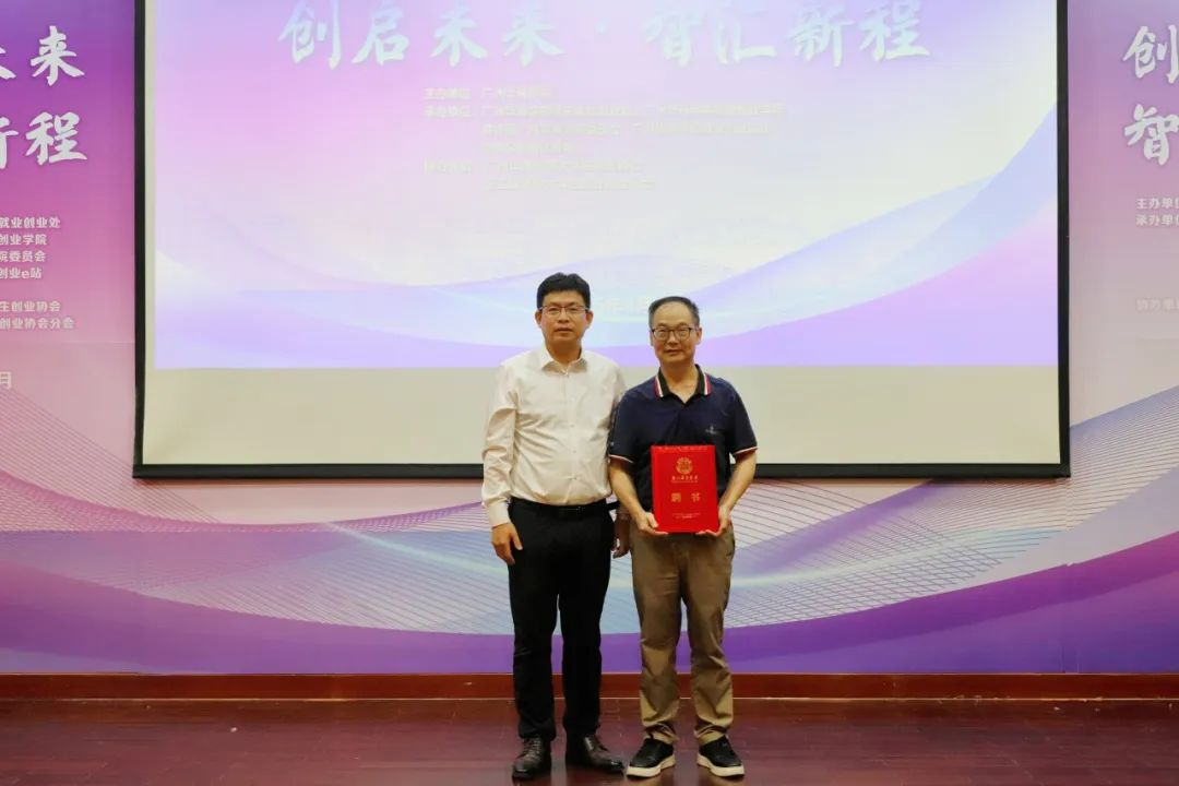余家军副校长为广州大学创新创业学院院长王满四教授颁发聘书,王满四教授受聘为威廉希尔中文网站创新创业导师。