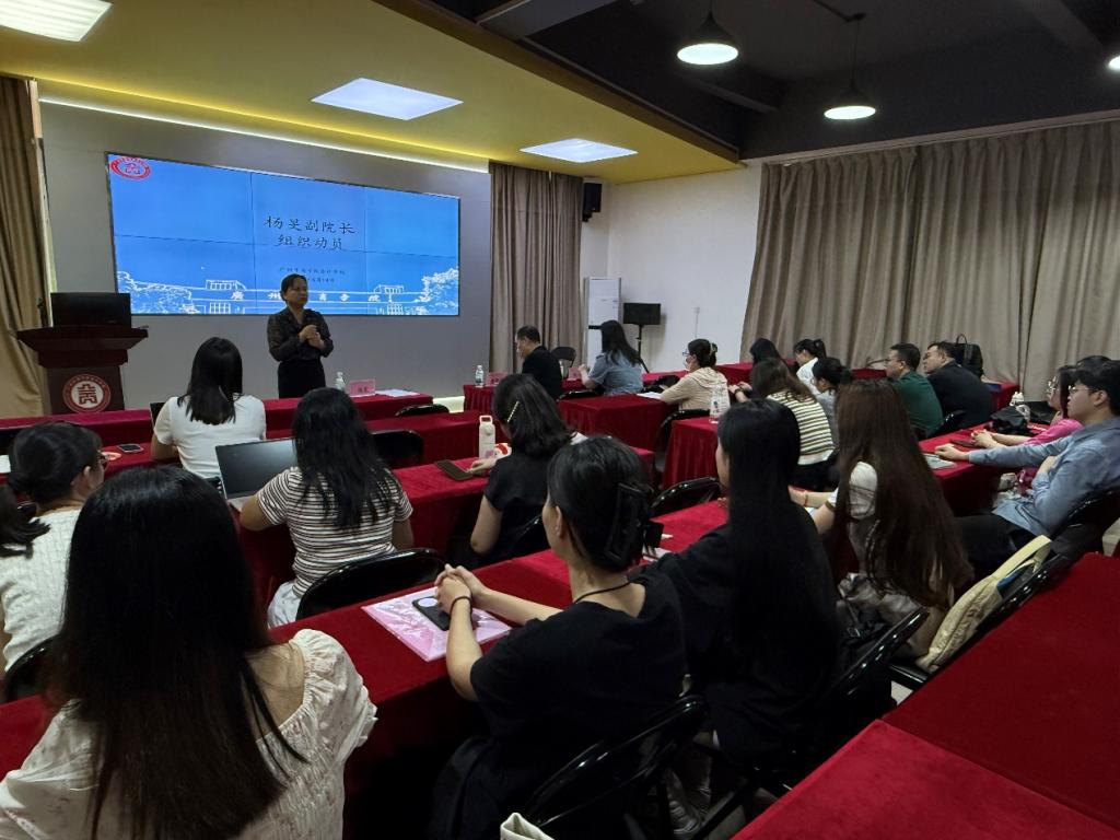 杨旻副院长在致辞中深刻阐述了“师徒制”对学院专业建设和师资队伍建设的重要意义。杨副院长指出,“师徒制”是学院培养优秀教师的重要举措,青年教师不仅可以向师傅们虚心求取教学经验、科研方法和育人智慧,还可以向优秀青年教师们请教如何迅速成长、如何使课堂教学语言精练且逻辑性强。此外,青年教师应掌握动画等多媒体技术,以创造具有特色的课堂环境。