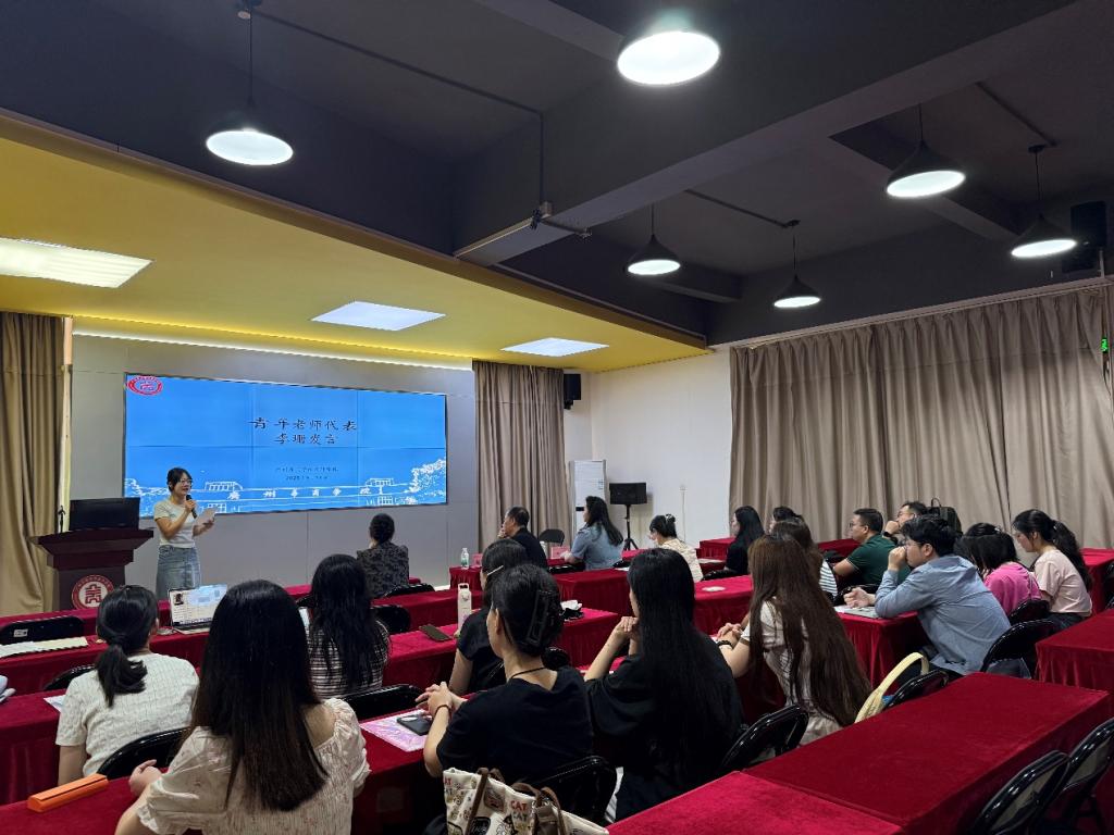 青年教师代表李珊发言。她表达了对学院搭建“师徒制”平台的感激之情,并分享了初入教师岗位时面临教学方法欠缺、课堂把控不足等问题。她指出,“师徒制”的实施为年轻教师提供了一个近距离学习优秀教师经验的宝贵机会。李珊老师表示,在未来的教学工作中,她已经设定了几个短期目标:在教学方面,她将在导师的指导下不断优化教学策略,提升课堂效果;在科研方面,积极关注学科的最新发展,学习科研的方法和技巧。此外,她计划在导师的引领下,积极参与学校的课程开发和专业成长活动,为提高学校的教育和教学水平贡献自己的力量。