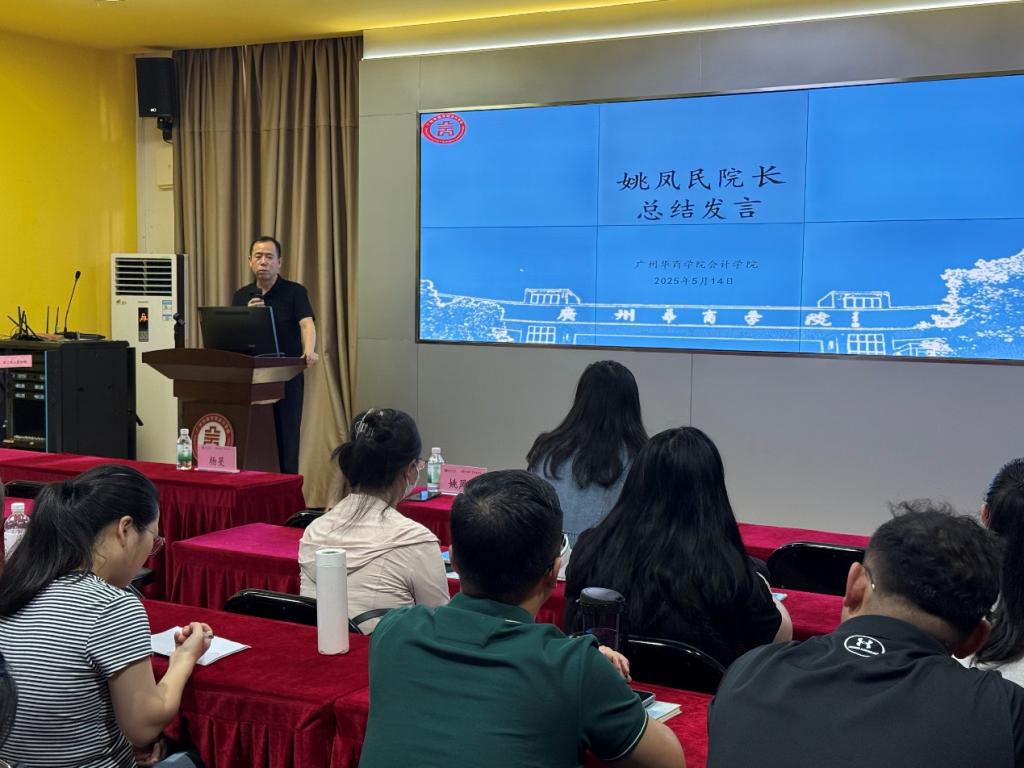 姚凤民院长对本次“师徒制”推进会进行了全面总结。他充分肯定了“师徒制”推进会的重要意义和前期筹备工作的成效,对参与“师徒制”的师傅和青年教师寄予了殷切期望。姚院长强调,古往今来,“师徒制”都是一种技能传授与文化延续的重要方式,会计学院资深教师与青年教师之间也需要一个桥梁延续与传承。作为资深老师,言传身教,为青年教师指明方向;作为青年教师,求知若渴,为会计学院注入活力。大家在“师徒制”中相互学习、共同成长,让知识流动起来,让成长看得见。他表示,师者如光,微以致远;徒者如苗,勤以参天。“师徒制”不仅是传承中创新,更是在耕耘中有收获。学院将全力支持师徒制的实施,为师徒们提供更多的资源和平台,助力青年教师快速成长,推动学院教育教学质量再上新台阶。