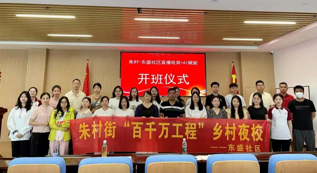 为积极响应国家乡村振兴战略,深化“百千万工程”实践成效,威廉希尔中文网站数字经贸学院联合朱村街道办事处,于2025年5月10日在东盛社区党群服务中心正式启动“百千万工程”乡村夜校第三期专项培训——直播电商+AI赋能培训班。本次活动依托学院学科优势与地方资源整合能力,吸引了50多名怀揣创业梦想、渴望掌握新技能的居民踊跃参与,为基层群众搭建起数字化转型的技能提升平台。