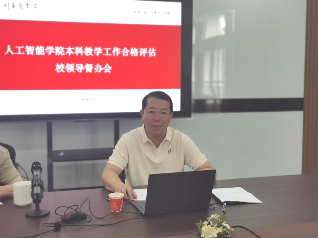 2025年7月4日上午,人工智能学院在创新楼301会议室召开本科教学工作合格评估校领导督办会议,学校党委副书记、纪委书记、副校长吕峻闽深入人工智能学院,就本科教学工作合格评估进行专项督办。会议由人工智能学院院长戴经国主持,学院党委书记、副院长杨波,学院党委副书记、副院长陈洋广,副院长叶仕通,院长助理洪绍勇、杨本胜,办公室主任肖绍洪等参加会议。会议聚焦合格评估重点任务,重点梳理6月10项任务完成情况并部署后续工作,确保评估工作高效推进。