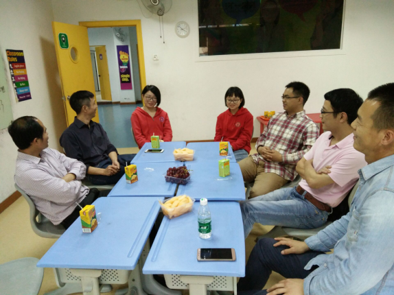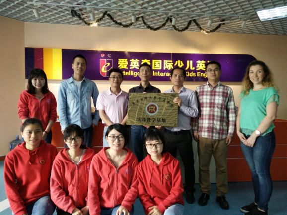 3月30日下午,外语系陈少鸿副主任与教务处朱越超等5位老师前往爱英奇少儿英语培训中心,探望了实习学生,与实习单位深切交流并举行实践教学基地挂牌仪式。