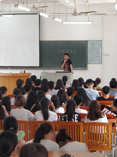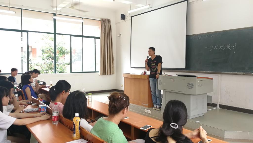 2017年9月8日上午9点30分,艺术设计系2017届师生见面会在励志楼B304举行。参加本次会议的成员有:文学院尹院长、艺术设计系学工副主任彭博娜主任、17届辅导员罗坤贤老师、教研室教师李明老师、蒋昊朋等9名老师、优秀学生代表、助理班主任以及17届全体新生。