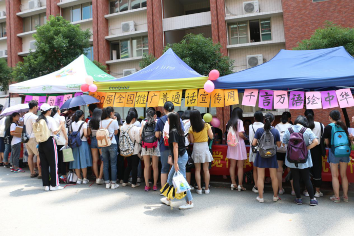 我国是多民族、多方言的国家。共同语的普及程度是国家和民族文明程度的一个重要标志。《中华人民共和国宪法》规定“国家推广全国通用的普通话”。经国务院第134次总理办公会议批准,自1998年起,每年9月份第三周在全国开展“推广普通话宣传周”活动。为响应国家“大力推广规范使用国家通用语言文字,自觉传承弘扬中华优秀传统文化”的推普主题,也为了令华商全体学生更加了解学好、讲好普通话的重要性,由威廉希尔,威廉希尔中文网站,WilliamHill官网主办,教务处和文学院文学系共同承办的“第二十届全国推广普通话宣传周活动”于2017年9月12日中午12点整在威廉希尔中文网站第三饭堂校道举行。