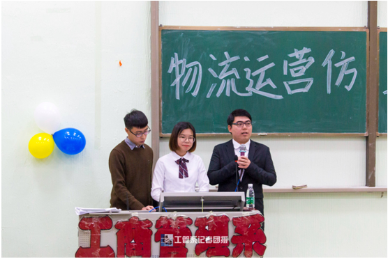 本次比赛共有8组参赛队伍进入决赛,物流仿真大赛以团队竞赛模式,以“百蝶物流仿真软件”为平台,参赛队伍模拟运营一个物流配送中心。在主持人介绍比赛规则和参赛队伍后,参赛队伍依次上台用ppt的形式展示自己小组的策划书,陈述方案设计的思路,其中一支队伍以研究背景、方案框架、调研结果、研究方法、研究结果、仿真验证、方案总结为线索来展示他们精心准备的策划书。接着进行答辩环节,由评委老师提出问题让参赛队伍进行解答。面对评委老师们抛出的问题,选手们积极回答,迎难而上。选手们在这次大赛中不仅获得了丰富的专业知识并汲取老师提出的宝贵建议。在4组选手完成展示策划书和答辩后,数字炸弹游戏使现场的气氛更加活跃。