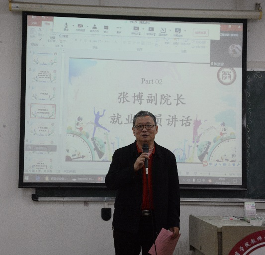 张博副院长作就业动员讲话。首先分析了今年全国全省本行业本专业的就业形势,在疫情的影响下,我们的就业形势是很严峻的,同学们要认识到这一形势。然后他从自己的人生经历为我们讲述了就业的重要性。他希望同学们能把在大学中学习到的知识运用到未来的工作中,而且提到如今就业的条件比以前好了很多,有着各个方面的支持,同学们可以积极的进行就业,但也不要忽视了其中的不利因素,要懂得规避。同时具体分析了有哪些就业的渠道,他为同学们提供了一些建议,为未来铺路,让他们少走弯路,在过程中通过通俗易懂的话语给与同学们上了生动的一课。最后他表示学校学院会是他们坚强的后盾,希望大家可以积极就业。
