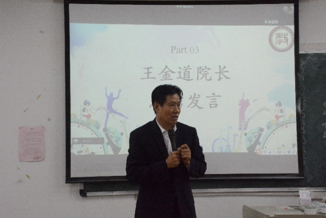 王金道院长总结发言。王金道院长总结了目前两方面的重要内容:第一个是毕业生毕业论文的完成情况,王院长提出同学们一定要主动和老师交流,写好毕业论文,重视论文答辩和毕业汇演;第二个是“爱”,对党和国家的爱、学校的爱、学院的爱,以学生为中心、以就业为导向,这三种爱都是为了同学们未来有一个好的发展,同时对毕业生提出希望——爱国家、爱学校、爱父母和爱自己,要积极就业,回报社会国家、回报家庭、回报学校、对自己充分负责。只要有困难就及时向学院提出,老师们都会给予同学们最大的帮助。