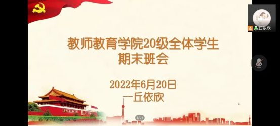 为加强教师教育学院学生的思想政治教育,规范相关考试考风考纪,提高学习自觉性,树立向上目标,增强个人财产安全意识和反诈及防疫意识,教师教育学院于6月中旬分别开展了19级、20级、21级期末考试考风考纪、反诈、防疫等思想政治教育各项工作会议,会议分别由19级辅导员朱娜老师、20级辅导员丘依欣老师、21级小学教育辅导员林婷老师和21级学前教育辅导员杜佳梦老师主持。