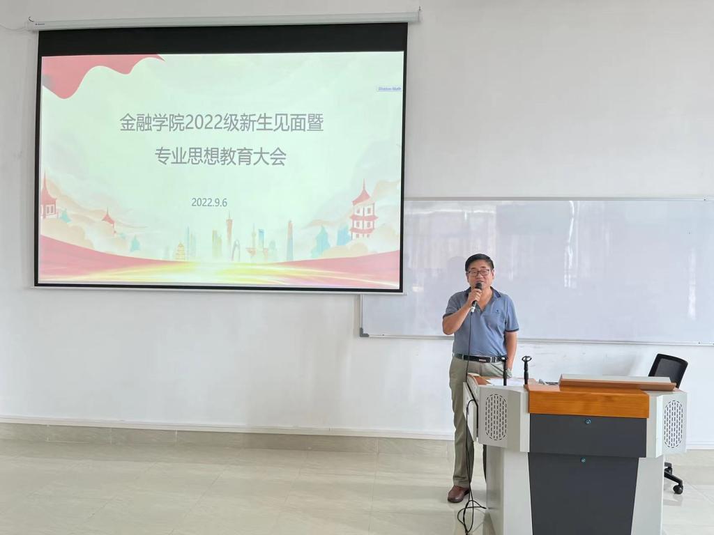 金融工程系副主任荣佳、经济与金融系副主任魏攀、金融科技系副教授李战国,分别为22级新生进行了专业教育。