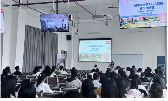 宣讲会第三项议程由ACCA广州办公室高级业务发展主任吴敏涵女士向各位同学详细讲述了ACCA创办历史,ACCA合作企业,ACCA未来的发展和机会,职场竞争中的优势等内容。