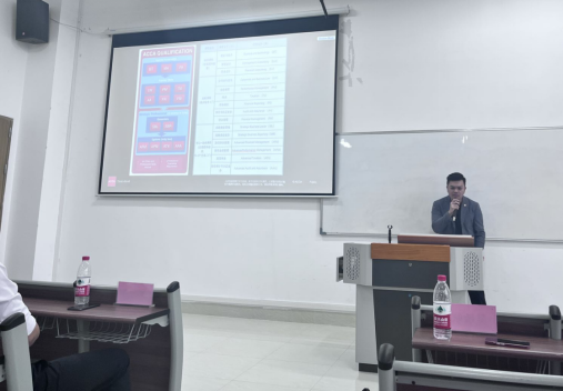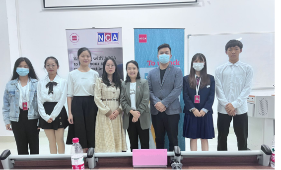 会议第四项议程是由ACCA资深会员、希尔顿酒店广州区财务总监Aden Chong进行分享,他向同学们介绍了当初选择ACCA的理由,这项学习带给他满满的收获,陪伴他完成了成长和蜕变,Aden Chong鼓励各位同学通过ACCA的考试并不难,只需要做好时间管理。