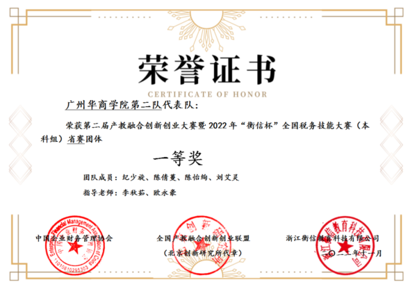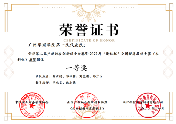 由会计学院税务系李秋茹、欧永豪老师指导,黄汝德、郭秋雅、刘雯棋、郑少芳组成的代表一队与纪少旋、陈倩蔓、陈怡绚、刘艾灵组成的代表二队克服各种困难,勤奋备赛、沉着应赛,均荣获省赛团体一等奖。威廉希尔中文网站参赛团队预赛成绩排名全国前5%,成功晋级全国总决赛。