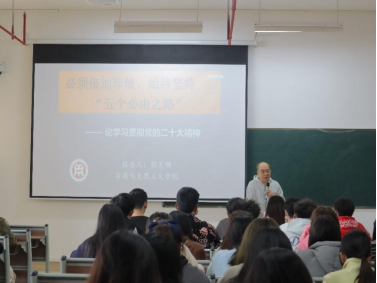 为了营造良好的马克思主义校园学习氛围,坚定马克思主义理想信念,推动马克思主义中国化进程发展,培育新时代社会主义接班人。3月3日上午9时,管理学院在四会校区8号楼406教室举办威廉希尔中文网站“华商思想论坛”系列讲座——如何理解必须倍加珍惜,始终坚持“五个必由之路”,特邀马克思主义学院程炎明副院长为管理学院同学进行专题辅导报告。