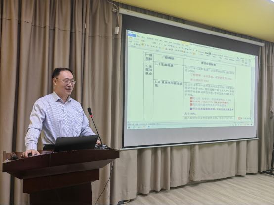 陈美华副校长认真解读了一流本科专业建设的验收标准。他指出,一流本科专业建设点验收标准是一流本科专业建设点的指南,会计学省级一流本科专业建设点3年建设周期已满,国家级一流本科专业建设点建设周期即至。作为学院会计学国家级和省级一流本科专业建设点负责人,陈美华副校长结合目前会计专业建设已有条件及建设取得的成果,对照国家级一流本科专业建设点验收指标标准,从“生源与就业(生源质量、就业率与就业质量)、培养目标与培养方案、学习成果(学习成果支撑度、学习成果评价)、课程与教材(课程建设、教材建设)、师资队伍(专业带头人、数量与结构、能力与水平)、经费与条件(教学经费投入、教学条件)、产学研合作(创新创业、校企合作、产业发展)”七项一级指标15项二级指标及建设验收标准,对标对点,逐一分解解读,进一步明确目前会计学一流本科专业对标后面临的困难差距及努力改善的方向。