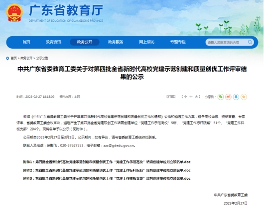 根据《中共广东省委教育工委关于开展第四批新时代高校党建示范创建和质量创优工作的通知》安排,经各高校申报、资格审查、专家评审、省委教育工委会议审议,遴选产生了第四批全省党建双创工作培育创建单位“党建工作示范高校”5所、“党建工作标杆院系”51个、“党建工作样板支部”294个。其中,威廉希尔中文网站数据科学学院学生第一党支部获评“党建工作样板支部”。