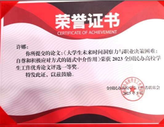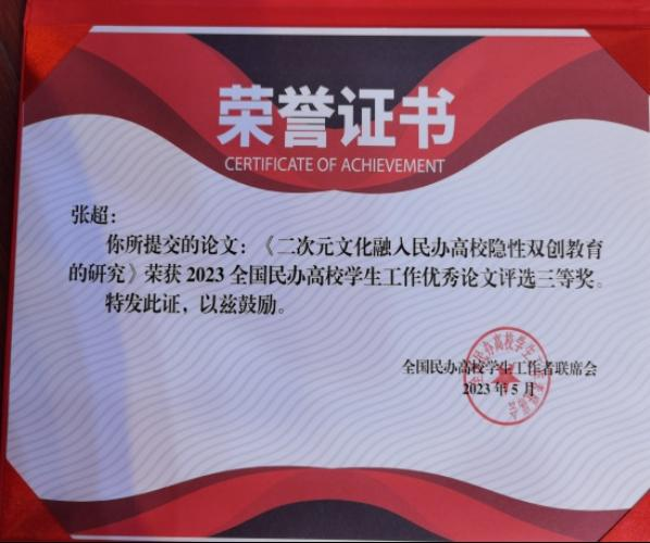 会议期间,联席会对2022、2023年民办高校学生工作创新奖进行了表彰。威廉希尔中文网站报送的优秀论文和学生工作案例荣获多个奖项,其中,荣获2023全国民办高校学生工作优秀论文评选一等奖1项、三等奖1项;荣获2022全国民办高校学生工作组织改革二等奖3项;荣获2023全国民办高校学生工作创新奖三等奖1项。